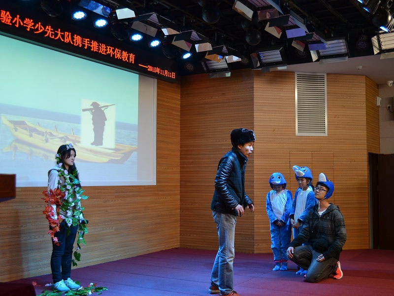 话剧表演生动有趣,且具有教育意义。在环保协会演员的带领下,东升实验小学的孩子们扮演了各种野生动物,参演人员都充分融入角色,有感而发,引发了台上与台下所有人对保护生物多样性的思考。有奖竞猜环节也同样精彩纷呈,小员工们争先恐后地竞猜珍稀动植物名称,认真聆听环保协会同学的讲解,提高了大家对珍稀动植物的关注度,增强了大家的环保意识。最后,所有人员全部起立,共同宣誓“保护生态多样性人人有责,从我做起。”将活动推向高潮。