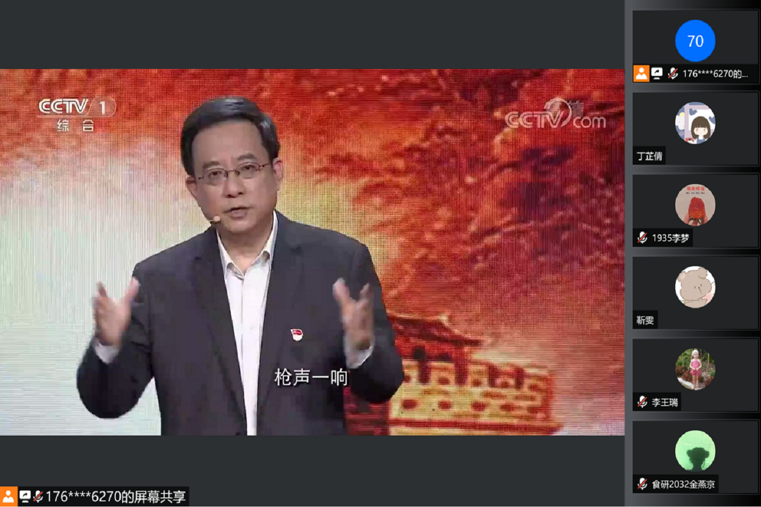 食品科学与工程硕士生第一党支部靳程茗:撒贝宁老师以一句“树高千尺有根,水流万里有源”作为开场,道出今年正逢中国共产党成立100周年。然后介绍出中共中央党史和文献研究院副经理黄一兵同志为我们做讲座。黄经理一上台的话令我深有感触,即党的历史一定是厚重的,但党的历史一定不仅是厚重的,而且还是有温度的,是鲜活的。这让我想起了中国共产党自成立之初,就一直把全心全意为人民服务作为自己的根本宗旨,是一个真正为人民谋幸福、干实事的党,我为自己能成为一名合格的共产党员而感到骄傲,我也更加明白了作为一名食品人及共产党员身上的重担,要让人民吃的明白、吃的健康、吃的安心。