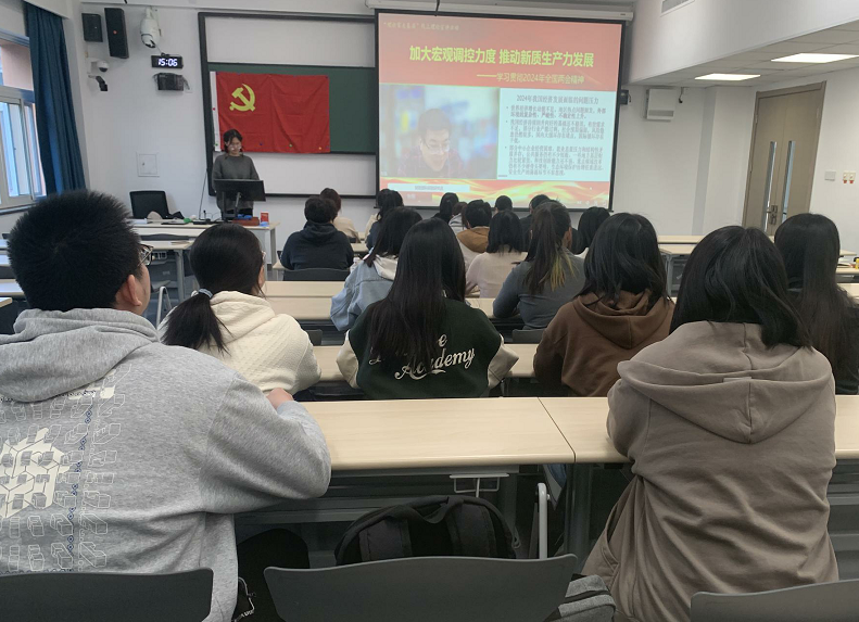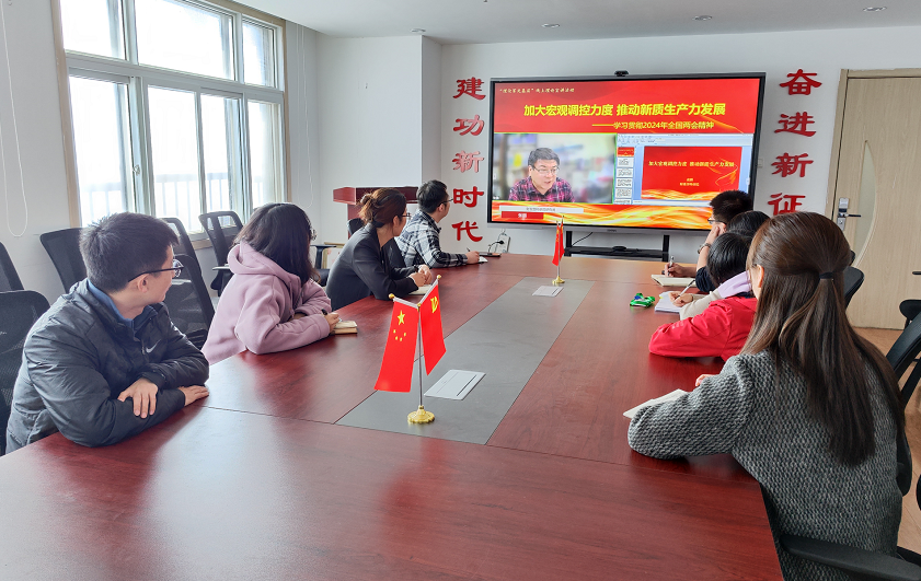 本次宣讲,中国财政科学研究院张鹏研究员以《加大宏观调控力度 推动新质生产力发展》为题,从新质生产力发展要点、2024年我国经济发展的预期目标、宏观调控取向和政策一致性要求、主要的财政政策与高质量发展和主要货币政策与高质量发展五方面对全国两会精神进行解读,深刻讲述了新质生产力在强国建设、民族复兴的新征程上推动高质量发展提供了科学指引,深入浅出的宣讲让全体党员进一步深入理解新质生产力的内涵。