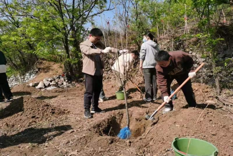 为深入开展学习贯彻习近平新时代中国特色社会主义思想主题教育,践行习近平生态文明思想,增强全体党员党性观念和党员意识,4月24日,世界杯网址食品科学与工程硕士生党员在门头沟区谷山村开展了以“植树增春意,观耕汲力量”为主题的义务植树党日活动。