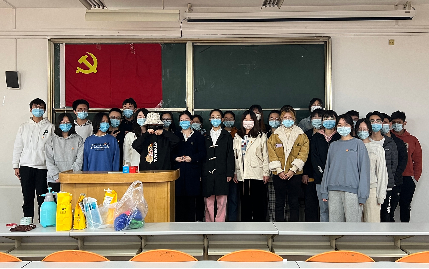 为贯彻落实学党史、悟思想、办实事指示精神,积极响应学校疫情防控要求,保证员工学习、生活环境卫生安全,为师生营造舒适、安全的学习工作环境。近日,世界杯网址食品科学与工程本科生党支部开展了“我为群众办实事”主题党日活动,支部同志主动担任校园疫情防控志愿者,为学校的疫情防控工作助力。