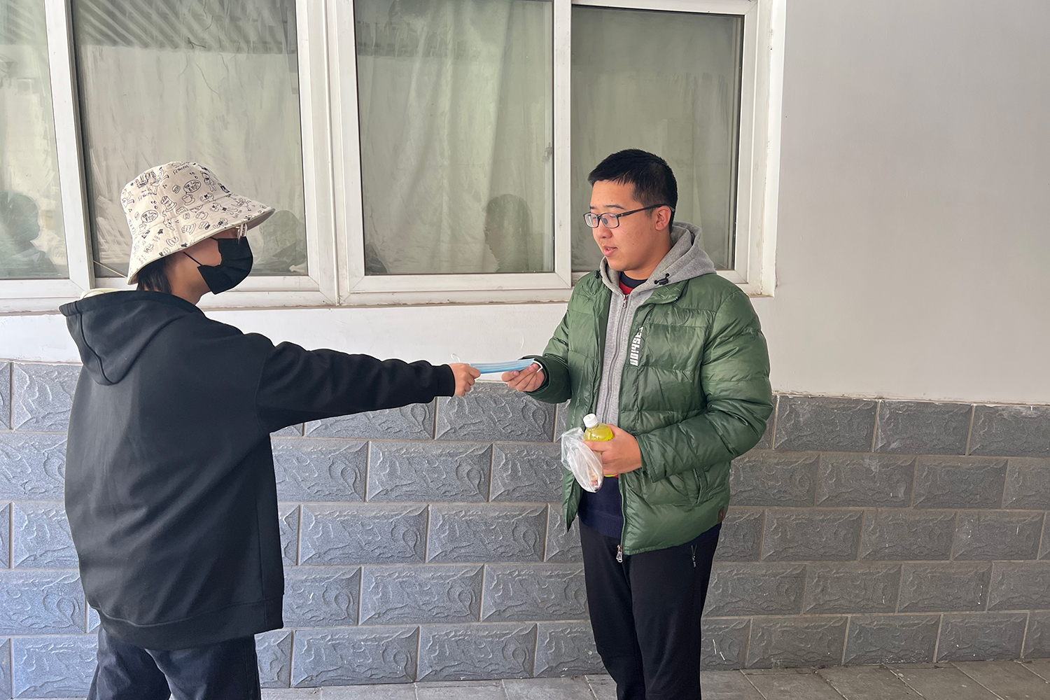 此外,支部同志还在校园内发放口罩,督促提醒校园内师生员工坚持佩戴口罩。