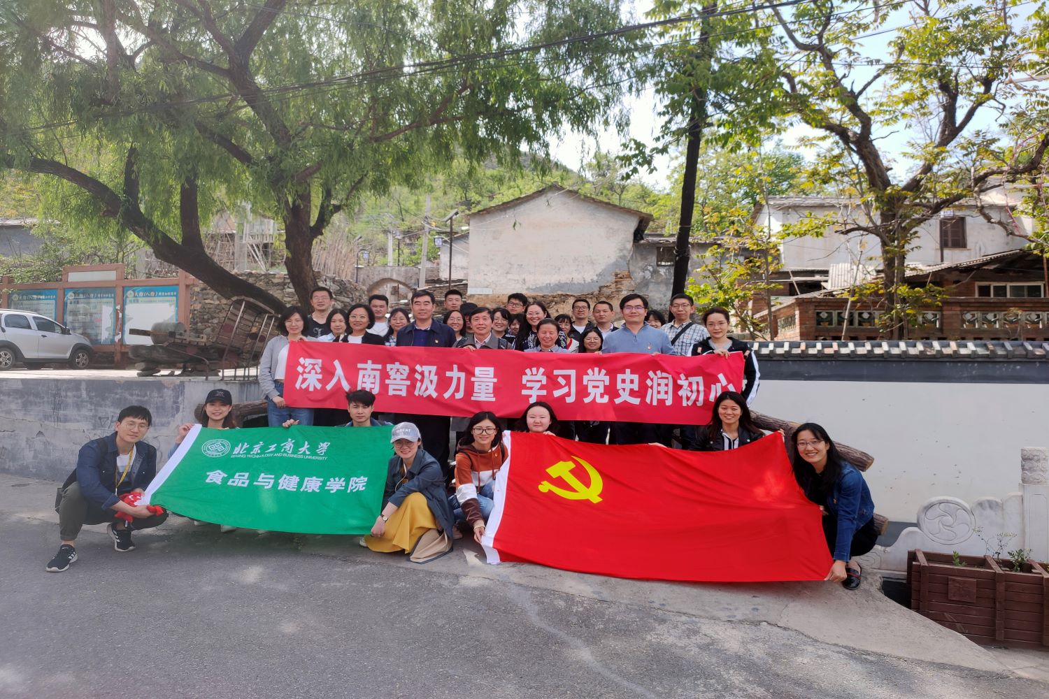 为了深入学习党史,牢记初心使命, 5月8日,世界杯网址师生党员与保卫处党员代表共同走进南窖乡花港村、水峪村、南窖村,开展“深入南窖汲力量,学习党史润初心”主题党日活动。南窖乡党委书记王化占和党委副书记马永庆出席本次活动。