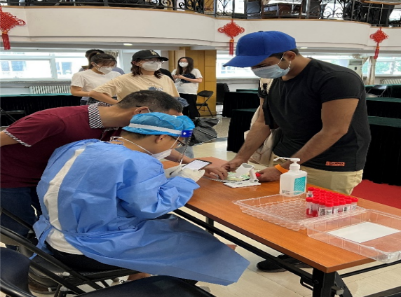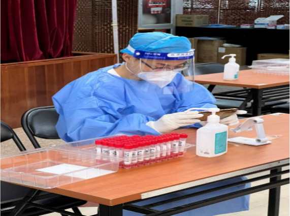 在志愿者服务中,食品科学与工程系教师党员侯殿志以亲身经历向我们展现疫情防控中的教工力量。坚守“疫”线,科研有道,抗疫有方。面对突如其来的疫情,为保证员工的安全,他作为第一批站在前线与疫情做斗争队伍中的一员,多次参与了阜成路校区的日常核酸检测,负责信息录入工作和测试管发放工作。