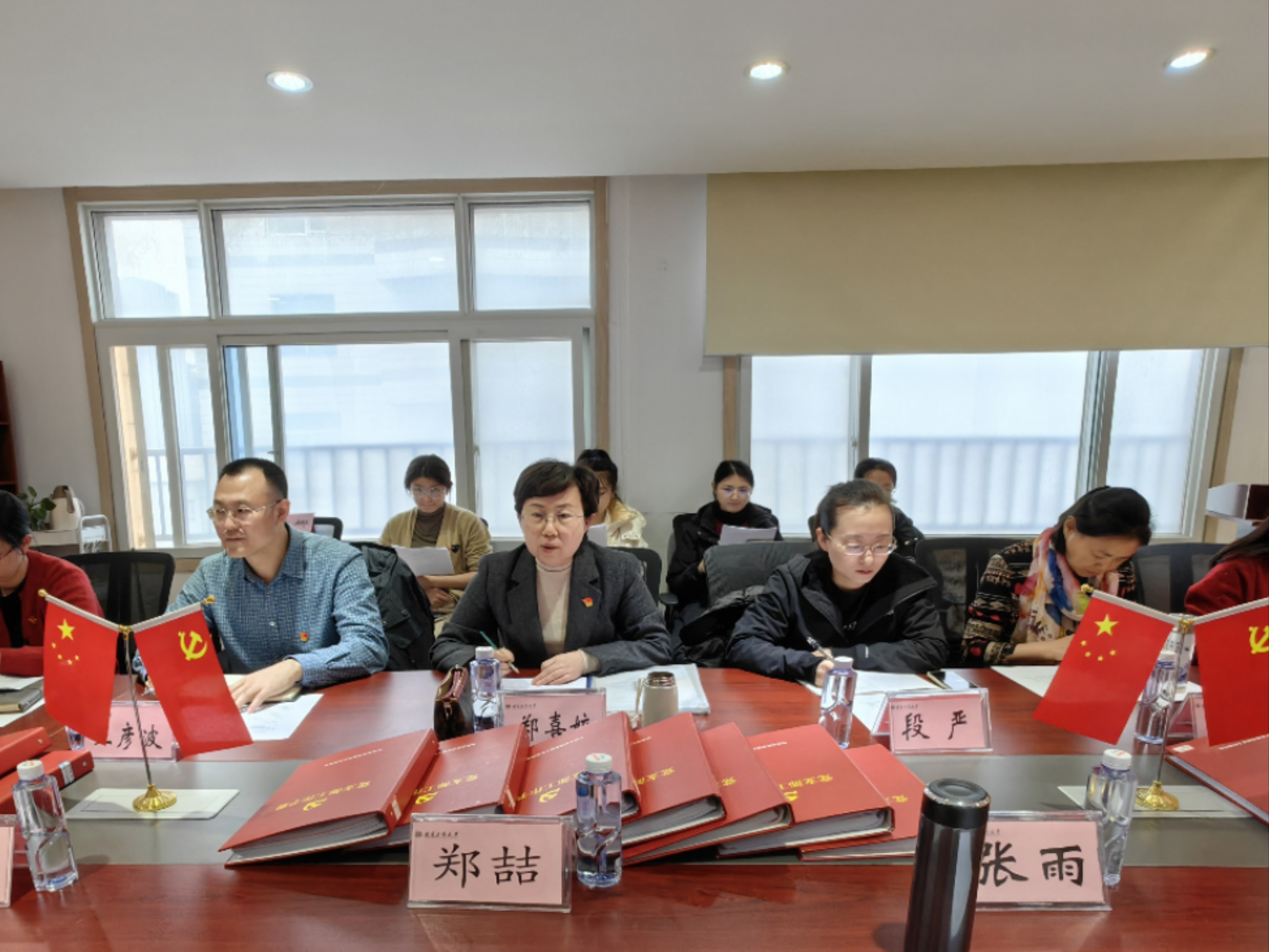 党委书记郑喜姣按照“一述一评”要求对4位书记逐一点评,她围绕党支部标准化规范化建设、党支部和党员发挥作用、学风作风建设等情况,肯定成绩,指出不足,提出希望。聚焦以高质量党建引领高质量发展,她在点评词中引用了优秀古诗词勉励各支部奋进新征程,“世上无难事,只要肯登攀”“千淘万漉虽辛苦,吹尽黄沙始到金”“不要人夸颜色好,只留清气满乾坤”……蕴含哲思的古诗词激励各党支部凝心聚力争创一流。