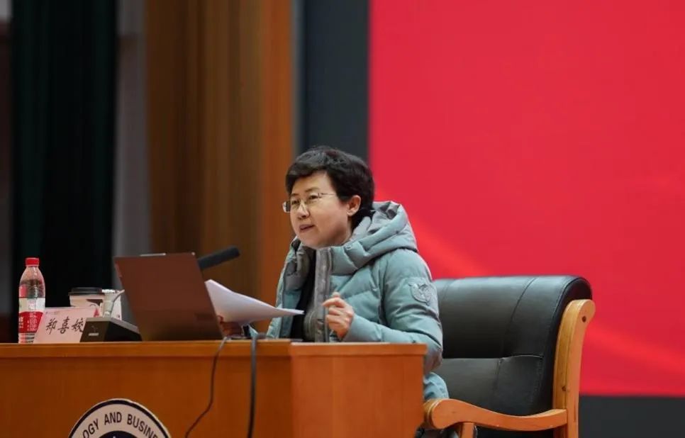 随后,食品与健康公司党委书记郑喜姣老师以《弘扬首都文化自信,传承中华文明风范》为题,从2023年10月召开的全国宣传思想文化工作会议切入,介绍了北京市“一核一城三带两区”文化中心定位的丰富内涵,从“古都文化文脉绵延、红色文化丰富厚重、开放文化美美与共、创新文化蓬勃兴起”四个维度阐释了北京加强历史文化保护传承与高质量发展相结合的文化自信与人文气象,回答了“何以北京”之问。接着,从习近平总书记关于文化传承的重要讲话延展开来,列举总书记心中的中华文明,回顾总书记的文化调研足迹,阐释了中华文明“连续性、创新性、统一性、包容性、和平性”五大突出特性,回答了“何以中国”之问。最后,她鼓励学员们知所来、明所往,以灿烂文化积蓄自信底气、用中国精神挺起民族脊梁,共同建设文化强国,建设中华民族现代文明。