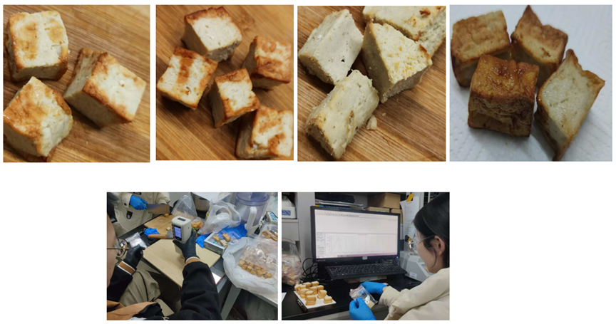 该项目小组成员在前期阅读大量文献,并进行验证实验最终确定实验材料,包括TG酶、大豆拉丝蛋白、豌豆淀粉等,并完成了混合鱼糜的处理和鱼豆腐配方的选定。单因素实验已对大豆拉丝蛋白和豌豆淀粉的添加量进行了初步分析,结果显示不同添加量对鱼豆腐品质有显著影响。后续实验将进行酵母蛋白和TG酶添加量的单因素实验,并设计正交实验进一步优化配方,提升鱼豆腐的口感和品质特性。