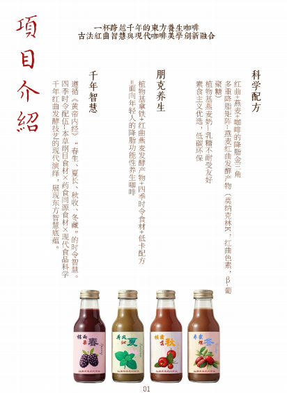 该产品根据时间医学和十二时辰理论,在一天不同时间段有不同功能。在味道上有特殊亮点,包装也极具特色。
