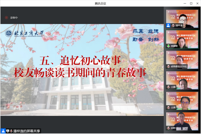 “云端”合影留念环节后,“云返校”活动在悠扬的校歌声中落下帷幕,浓浓的同窗情溢满“云端”网络,直达每个“食院人”的心底。