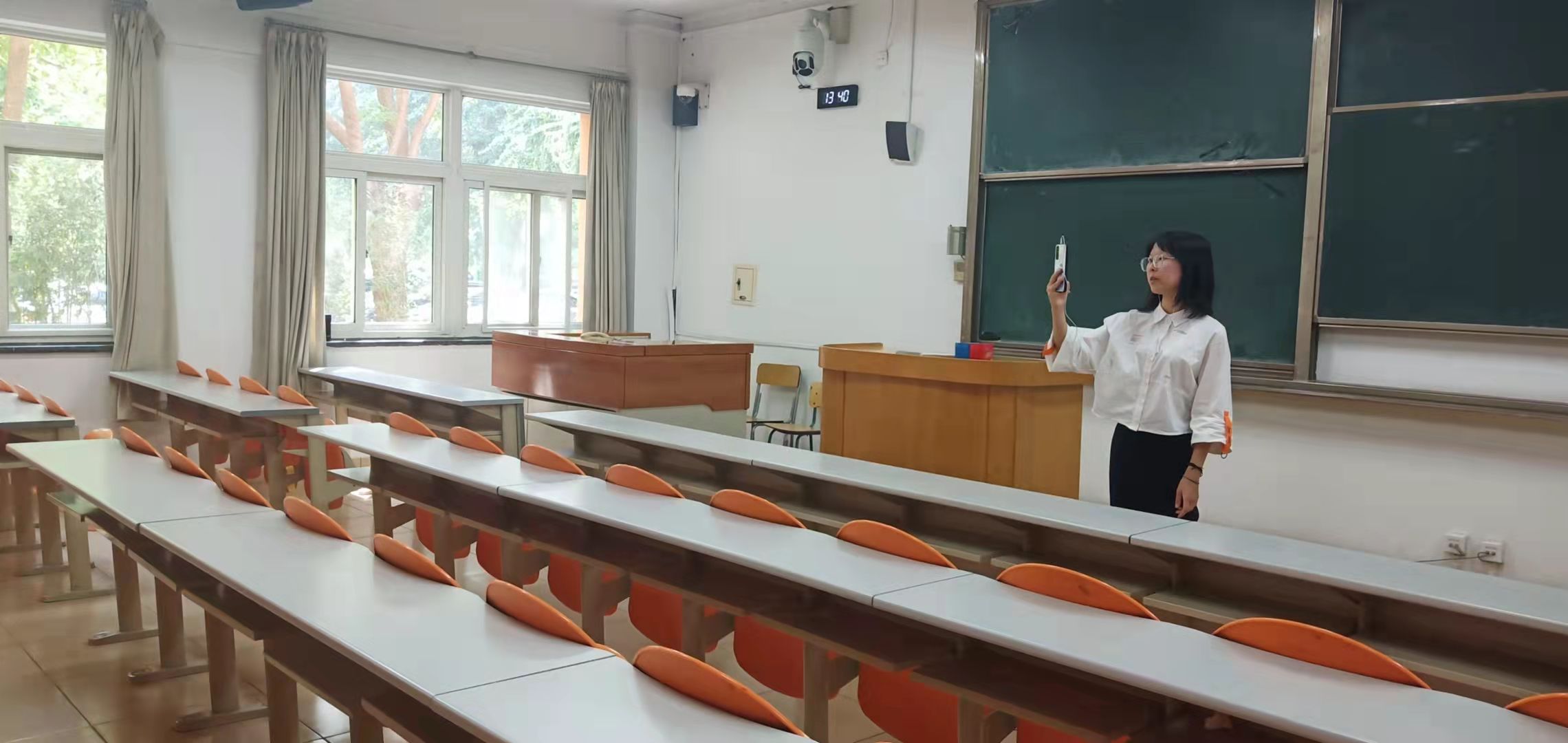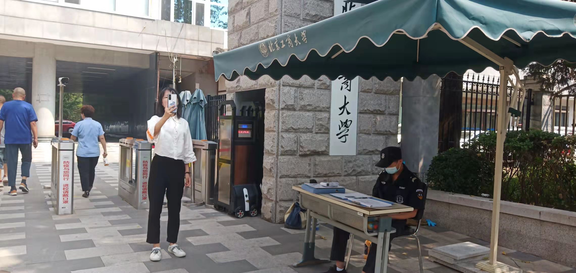 9月2日下午,和新生们同样怀着紧张心情的20级员工李晴带领新生们开启了一场线上游园活动。从东校区南门开始,这里也是新生们报到时进入学校所走的门,进入大门直走,右侧依次是东区一号楼、东区操场、宿舍楼,左侧是东区礼堂、东区八号楼,正前方是东区食堂,水果店、校园超市、打印店、澡堂、洗衣房等,各个楼宇建筑、运动场地的特点、用处等一一细致介绍。