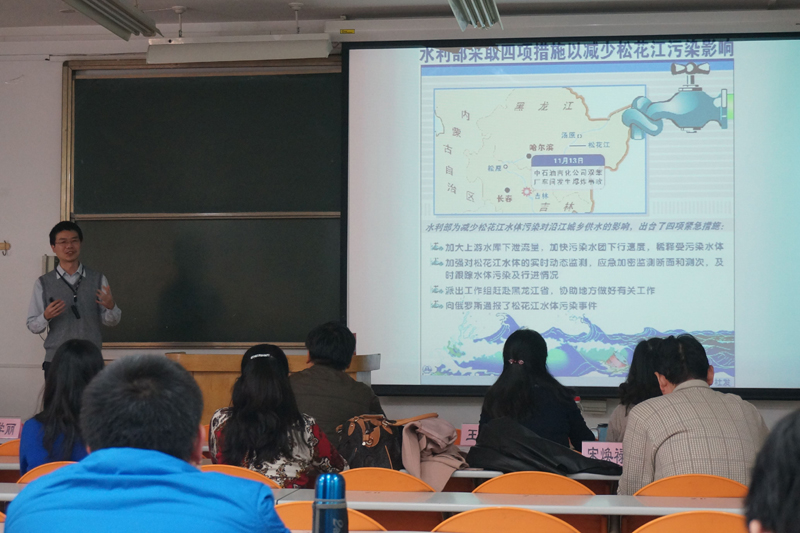 冯旭东老师主讲蒸汽冷凝传热规律,讲课重点突出,语速适中,讲课节奏把握良好;张婵老师讲课生动、细致,深入浅出,引人入胜,如一股清流般进入听课人心田;杨绍祥老师以松花江事件为切入点,引入讲课主题,讲课从容大方,肢体语言丰富;申现宝老师主讲机动车污染与控制,与人们关心的雾霾相结合,数据清晰,讲课生动有趣;赵睿老师主讲了生物工程概论,讲课内容清晰明了。最后七位评审专家对五段教学展示进行点评。