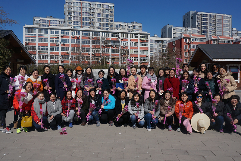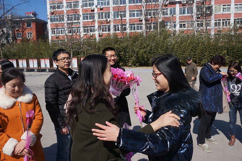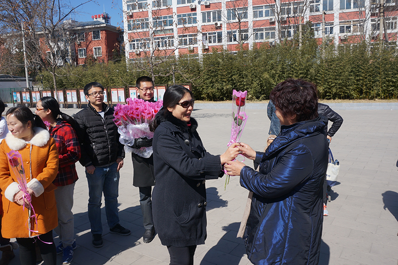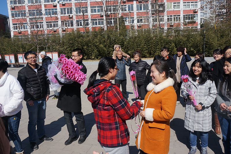 公园暖阳明媚,微风和煦,女教工们暂时摆脱雾霾的缠绕,一享春日的明媚阳光。健步行过程中穿插了“予人玫瑰,手留余香”的小活动,参与者将向随机抽取名单的老师赠送玫瑰并赞美对方拥抱对方,在这个属于世界妇女的节日里,大家相扶相携,踏春郊游,得到充分的放松,进一步融洽了同事之间的关系,增强了凝聚力。