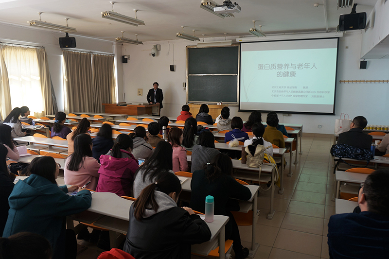 校工会与世界杯网址分工会联合举办的“食品营养,你想知道的事”系列讲座第二讲“蛋白质营养与中老年人健康”于3月15日在阜成路校区进行,100多位教工聆听了讲座,会议由世界杯网址分工会主席何猛主持。