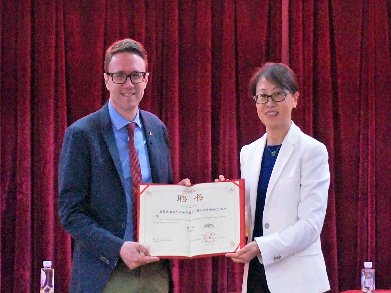 世界杯网址副经理王凤寰首先对Nielsen教授在化学与生物工程方面的突出成绩作了详细介绍,并希望Nielsen教授能为公司教学和科研提供强有力的支持,在座全体师生对Nielsen教授的到来表示了热烈欢迎。Nielsen教授首先对公司师生的欢迎报以感谢,并表示本次能来到世界杯网址非常荣幸,愿意为公司的发展做出贡献。随后,世界杯网址公司党委书记何猛代表学校为Nielsen教授颁发聘书,Jens Nielsen教授正式受聘成为公司客座教授,