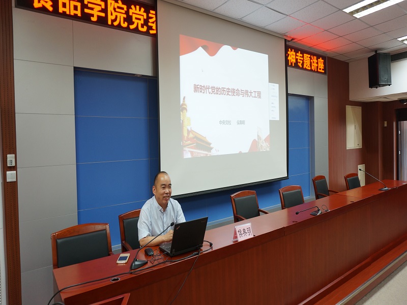 侯典明结合国内外局势,深入浅出、生动形象地从党的初心与奋斗目标;党的领导核心问题;新时代党建的总要求三个方面,阐述了新时代党的历史使命与伟大工程。解释了新时代党的“两个一百年”奋斗目标,同时也解释了党的领导核心的三重含义:第一,即中共作为执政党,在整体上是领导中国特色社会主义事业的核心力量;第二,中共的中央委员会,特别是中央政治局和中央政治局常委会,是对全党实行集中统一领导的核心;第三,在中央政治局常委会这个核心领导层,要形成一个“大家公认的、人民满意的中央领导集体中的核心”。最后,侯典明研究员还强调了新时代党的建设的总要求,要突出政治建设,以政治建设为统领,坚持政治建党。