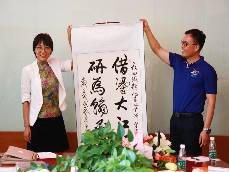 当年的校员工会主席化943的张杰员工代表全体精化94级同学,向世界杯网址赠送了名家书法作品“借得大江千斛水,研为翰墨颂师恩”,以表达对母校以及各位老师的感恩之情。胡燕霞副书记作为院员工工作负责人,代表学院接受了员工的赠品并进行发言,介绍了近几年学院员工工作情况,也希望员工们就健全联络员工、学院与员工互动、搭建学校与员工合作平台等方面出谋划策。
