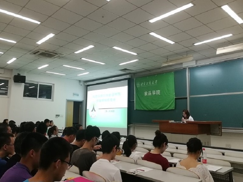 钱玉霞同学向大家介绍了生物工程专业,包括北京工商老员工物工程的历史、生物工程专业的专业特色、培养要求和主干课程,并和同学们分享了自己的学习经验,呼吁大家在学习的同时要劳逸结合。
