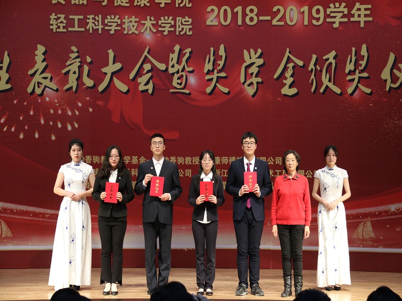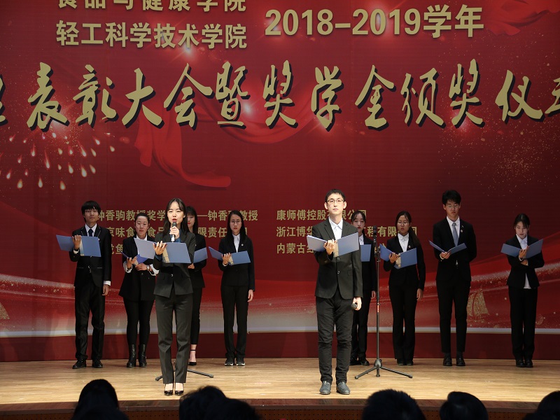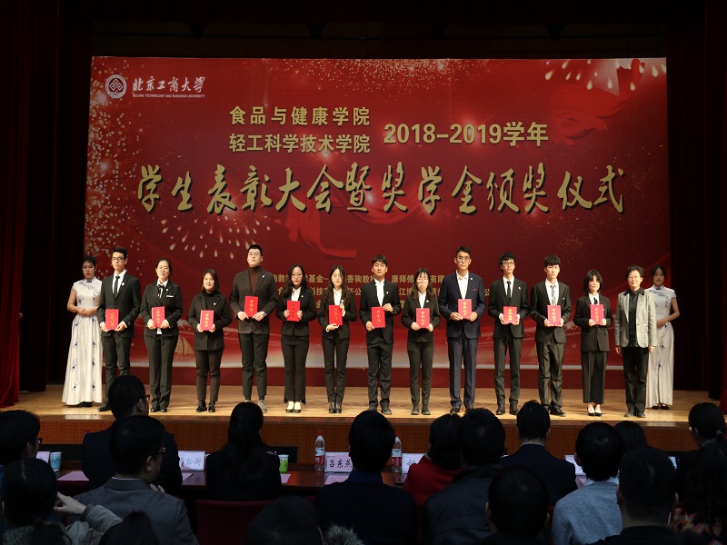 为深入推进“不忘初心、牢记使命”主题教育,弘扬爱国主义精神,表彰先进,树立榜样,世界杯网址、轻工科学技术学院于12月11日在阜成路校区举办2018—2019学年员工表彰大会暨奖学金颁奖仪式。钟香驹教授之女钟捷老师,北京味食源食品科技有限责任公司高级研发工程师彭秋菊女士,康师傅控股有限公司北京区董事/主任李宜霖女士,益海嘉里研发中心研究员贾松衡先生,益海嘉里研发中心人事行政部张驰先生,员工会、教育基金会办公室主任、秘书长吕东燕,研究生院副经理、研究生工作部副部长郭新愿,公司领导、经理助理、各(系)室主任、班主任、辅导员、受表彰员工代表、各年级员工代表等共计700余人参加大会。
