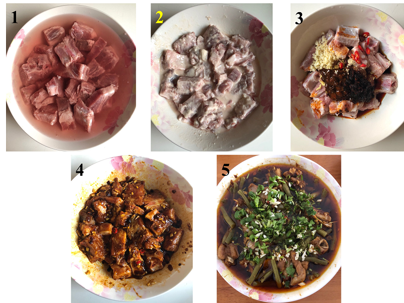 《豆豉蒸排骨》这道菜制作过程中不需要加入油,相比高温炒肉类食品,能够有效降低蛋白质在高温反应下产生的杂环胺类有害物质,并且蒸制过程中,入味浓,能够保留肉制品和调味料的风味;同时蒸制时无油烟产生,方便环保。