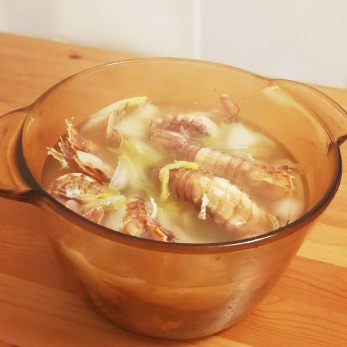 南方有道名菜“蟹白汤”,取海蟹与白菜之鲜甜,少油少盐,无需过多其余佐料,实乃健康美味之上品。抗疫在家,海蟹不易得,用皮皮虾代替海蟹,仍可得鲜美清甜之味。春天,正是皮皮虾产卵的季节,此时的虾肉质鲜嫩肥美,最适合煮汤,与白菜、豆腐等味觉寡淡的菜为伍,益发显得平淡中有真味。皮皮虾富含蛋白质、卵磷脂、各种维生素和矿物质;白菜中含有大量的膳食纤维和维生素;豆腐中有着丰富的植物蛋白;粉丝由淀粉制成,含有大量的碳水化合物;上述各种主辅料搭配,营养全面,低热少脂,温润滋补,最适合在春夏季节食用。