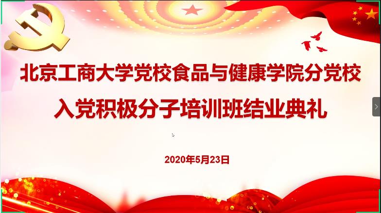 5月23日下午2:00,世界杯网址分党校入党积极分子培训班结业典礼以线上形式举行。食品与健康公司党委书记、分党校董事长胡燕霞,公司党委副书记、分党校副董事长单静敏,辅导员、分党校班主任李欣萍,分党校兼职辅导员苗玉娇、刘婉璐,以及52名党校学员参加了此次典礼。典礼由公司党委副书记、分党校副董事长单静敏主持。