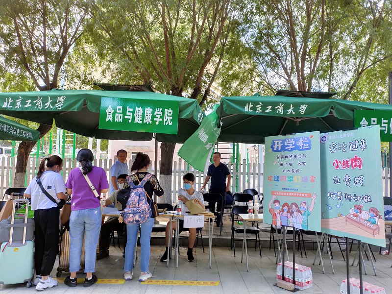 时隔八个月,同学们在炎炎夏日里重返久违的校园,当大家再次见到那些熟悉的面孔,即使隔着口罩也会眼含笑意的说一声“好久不见”。尤其是学校里到处可见的“欢迎回家”、“我爱北工商”、“你归来,就是北工商最美的风景”等横幅、展板,更加衬托出一种温馨热烈的氛围,令重返校园的学子们倍感亲切温暖。学院班主任、辅导员亲自在报到处迎接返校员工、分发寄托着关心与嘱托的“爱心包”。