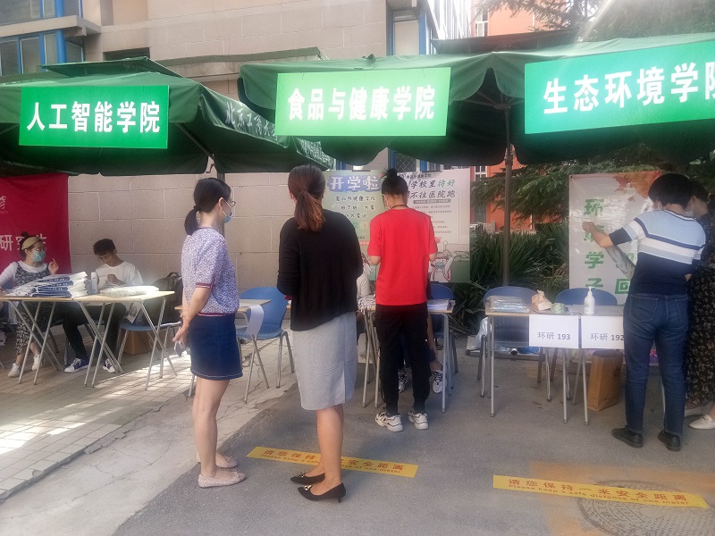 “你回来的这天就是北工商最美的一天”、“我爱北工商”——学校入口处醒目的展板、校园内随处可见的欢迎横幅,衬托出温馨热烈的氛围,令重返校园的学子们倍感亲切。