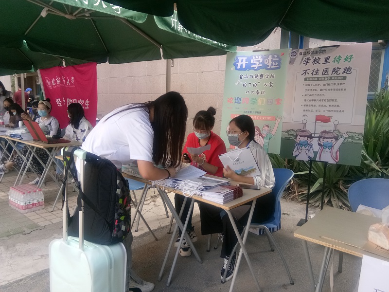 公司副书记单静敏、辅导员门怡帆亲临现场指导工作开展,了解老生返校情况。报到点,志愿者们用饱满的热情、积极的态度查验返校员工的核酸检测证明并为大家发放爱心包。考虑到有的返校同学行李较多,学院为学子们准备了行李推车,由志愿者帮助同学们运送行李。“你好,同学!欢迎回家!”来自学院老师的问候,让久别校园的同学感到了温暖。食研1931赵莹感叹道:“见到许久未见的老师、同学们,真是有一种回家的感觉,一切都还是那么熟悉,那么亲切!”