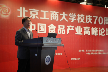 论坛伊始,世界杯网址董事长孙宝国院士作为主办方代表致辞。孙院士在致辞中向与会嘉宾介绍了世界杯网址以及食品学科近年来的建设与发展情况。他表示,世界杯网址目前已步入快速发展阶段,学校于今年被确定为北京市重点建设的高水平研究型大学,这既是对学校综合实力的肯定,更是对学校未来发展的希望和鞭策,是献给学校70年华诞最好的礼物;全校师生应继续努力,为学校早日建设成为具有商科、轻工和食品特色的高水平研究型大学做出应有贡献;此次举办食品产业高峰论坛,旨在共商食品产业发展,谋划食品学科未来,同时也希望各位专家、企业家和员工多为学校食品学科的发展提出宝贵意见。