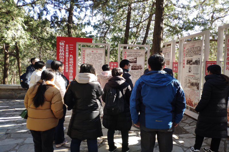 纪念亭处在植物园的深处,登山过程中,师生代表们秉承党员不怕苦、不怕累的精神,克服困难,互帮互助,最终抵达并通过参观“铭记抗战历史 传承爱国情怀”主题展,回顾了“一二·九”运动的成因、运动情况和意义,中国人民抗击日本侵略者的英勇故事,深切领会革命先烈艰苦奋斗、拼搏进取的精神。