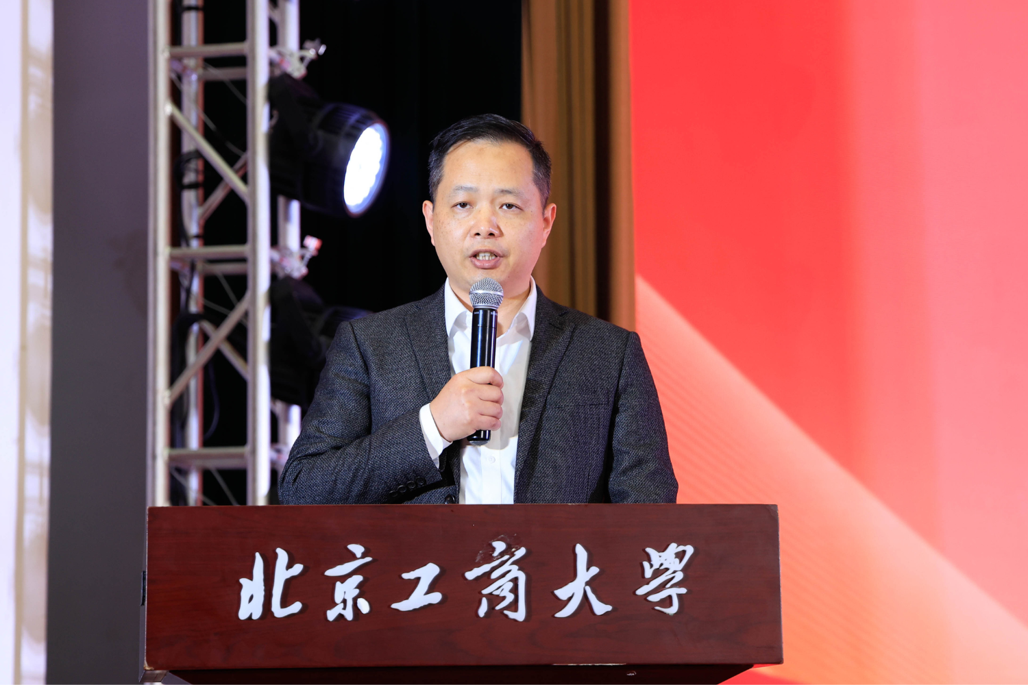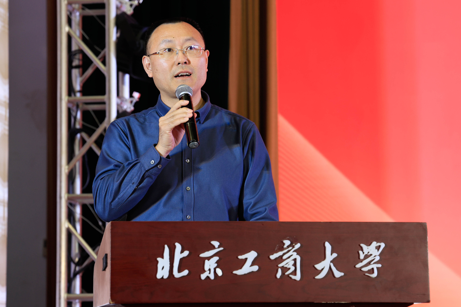 北京味食源食品科技有限责任公司董事长助理兼研发总监、北京市劳动模范严江在发言中首先向获奖员工表示热烈祝贺,并对学院的培养致以敬意。他回顾了自2011年设立“味食源奖学金”以来与学院在人才培养方面的合作历程,强调食品行业的生命力在于创新,而创新的根基在于人才。他分享了两点心得:保持对“味道”的敬畏,让创新兼具科技与温度;坚守对“创新”的执着,勇于在解决实际问题中实现价值。严江表示,公司将持续深化与学院的产学研合作,提供更多实践平台,共同推动食品行业高质量发展,并祝愿学子们学业有成,学院再创佳绩。