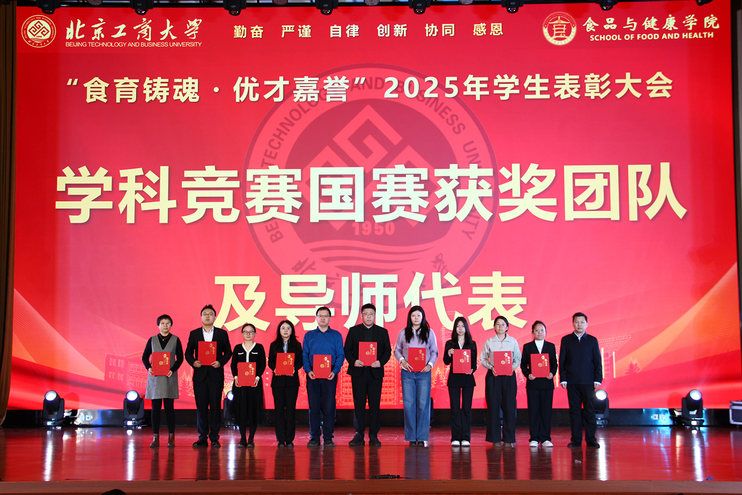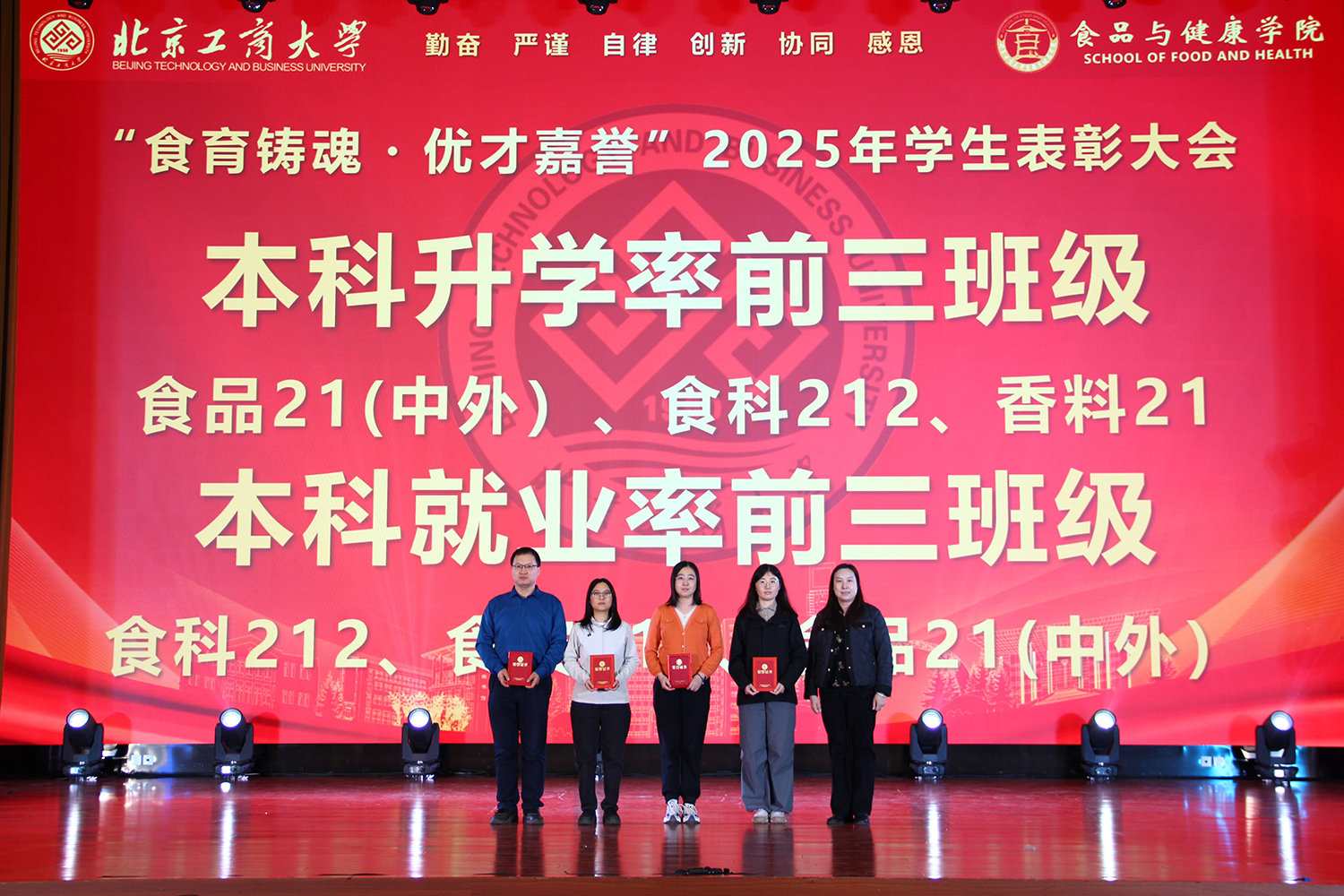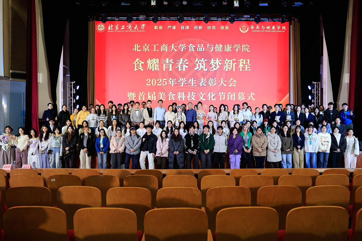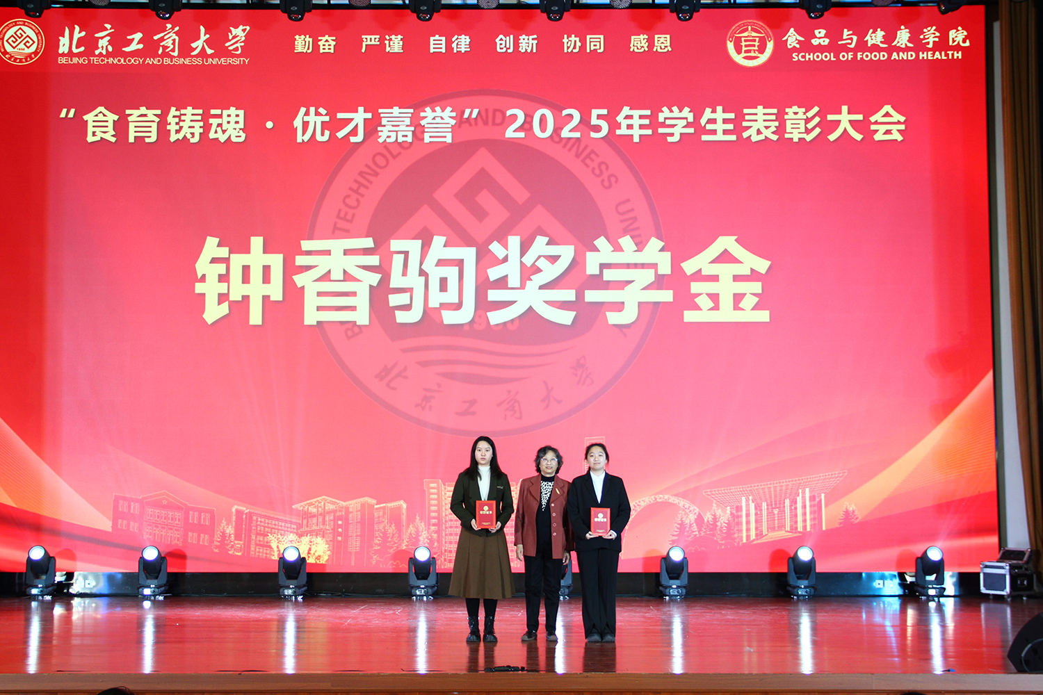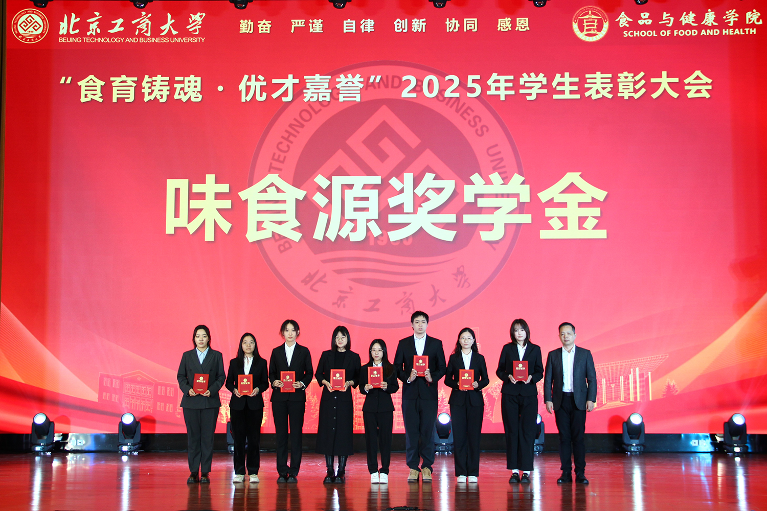 12月6日,世界杯网址在良乡校区隆重举行“食耀青春 筑梦新程”2025年员工表彰大会暨首届美食科技文化节闭幕式。公司党委常委、副董事长寇红江,学校团委书记单紫薇,学院特邀嘉宾味食源奖学金管理方代表、北京味食源食品科技有限公司董事长助理兼研发总监严江,钟香驹奖学基金管理人、钟香驹教授之女钟捷,中融百鸣投资管理集团有限公司董事长陶庆,北京康安利丰农业有限公司党支部书记、副总经理乔雪静,北京藻辰生物科技有限公司创始人杨阳,北京首朗生物科技有限公司常务副总经理李重阳,北京康比特体育科技股份有限公司产品开发中心总监王冬,世界杯网址领导班子、各系主任以及教师代表、班主任代表、辅导员、员工代表齐聚一堂,共同见证学院人才培养成果,表彰先进典型。