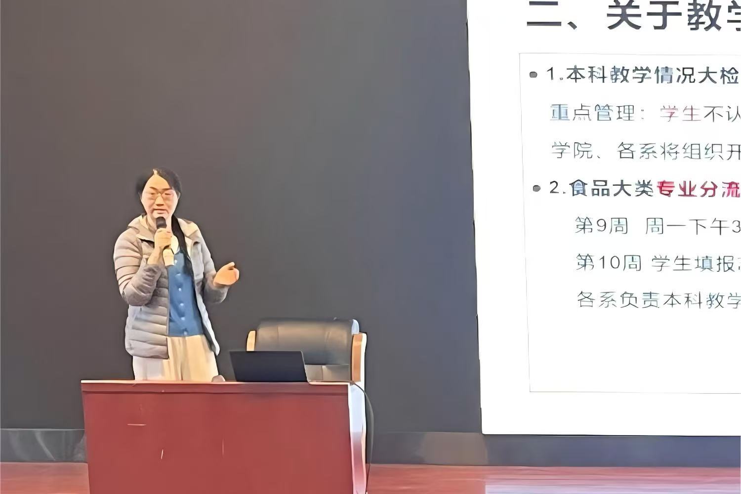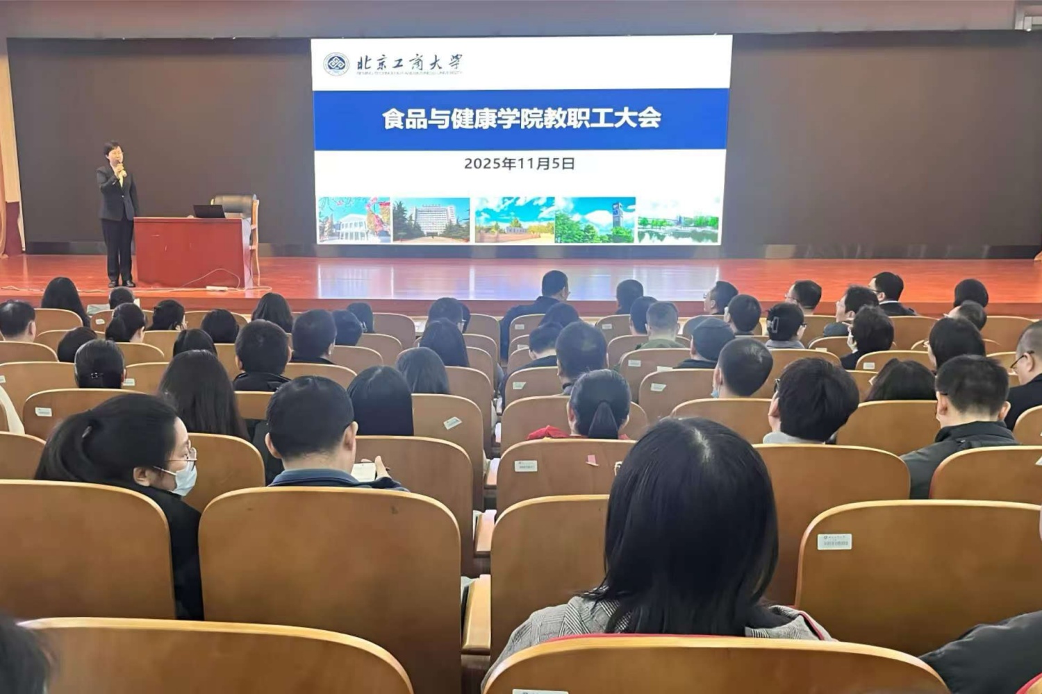 经理王彦波主持了同行评议环节,他介绍了今年申报职称概况和工作进展,在相关部门的现场指导下,全体教职工投票进行评议。学院领导分别对近期工作进行了部署。副经理王蓓围绕本科教学,介绍了本科教学大检查的要求和开展食品大类专业分流的安排,强调各专业教师要加强课堂管理,切实保障教学秩序规范,各系要组织线上线下听课,查找问题和差距,研讨如何提高授课质量具体举措。副经理李健聚焦科研工作,提出全力做好2026年国家自然科学基金项目申报准备工作,推进科研到位经费,希望各团队负责人对照年度目标,全力完成年度任务。副经理孙啸涛对加快推进国有资产盘点、学院公共区域电子屏的使用管理作了说明,强调实验室安全工作是重中之重,要强化实验室负责人制、落实实验室分级分类管理、实施安全准入制度、严格危化品管理、合理处置危险废弃物,定期巡检实验室,及时发现和处理安全风险隐患。