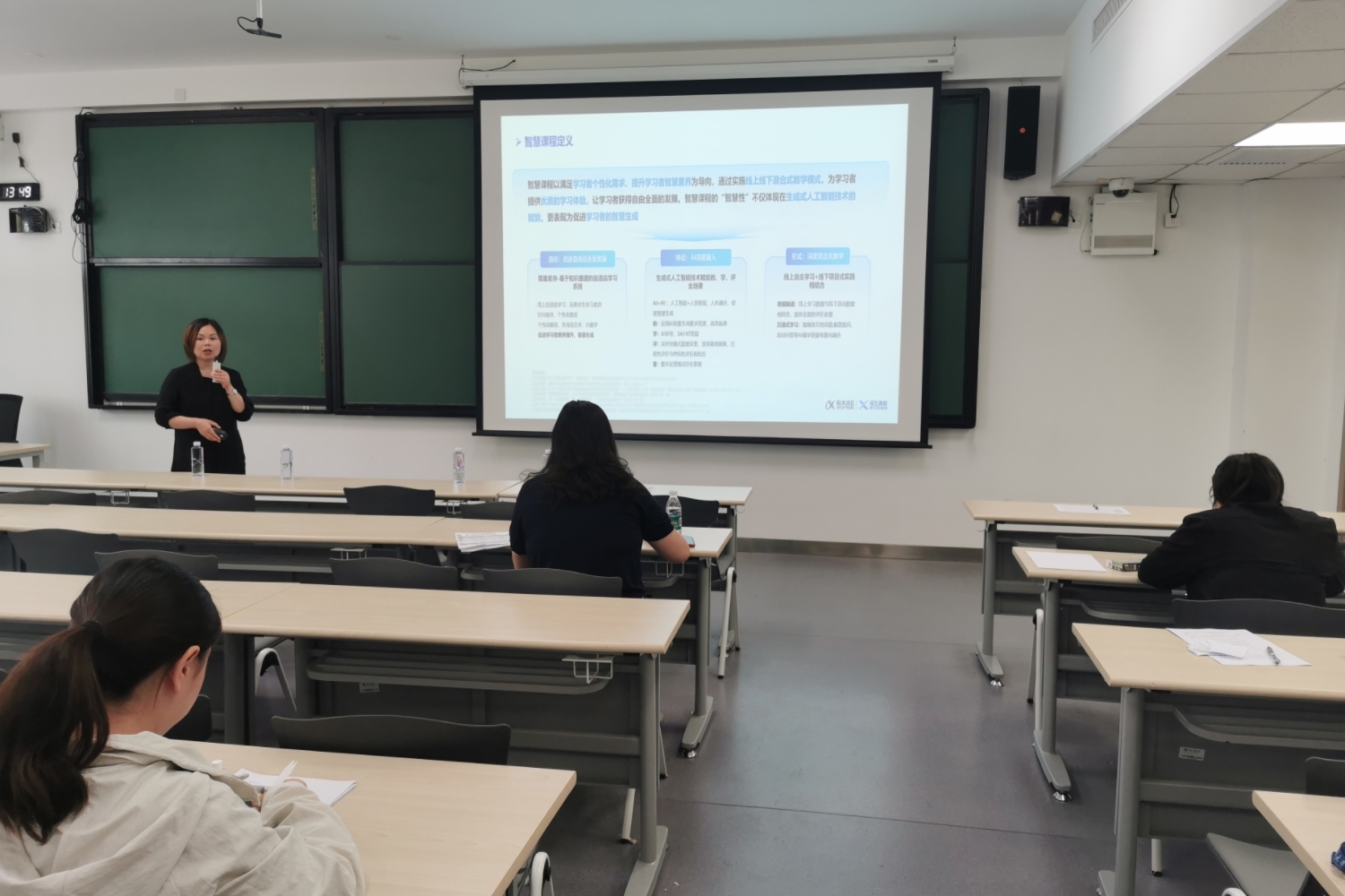 在数字化转型背景下,学院特别邀请科大讯飞教育研究院技术总监作《智慧课程建设赋能高校教学改革》专题报告。报告立足教育现代化发展前沿,系统阐释了人工智能、大数据等新一代信息技术与公司产品深度融合的创新路径。专家通过典型案例分析,生动展示了智慧教学平台在精准学情分析、个性化教学设计、智能化课堂互动等方面的创新应用,为推进课堂教学模式变革提供了新思路。