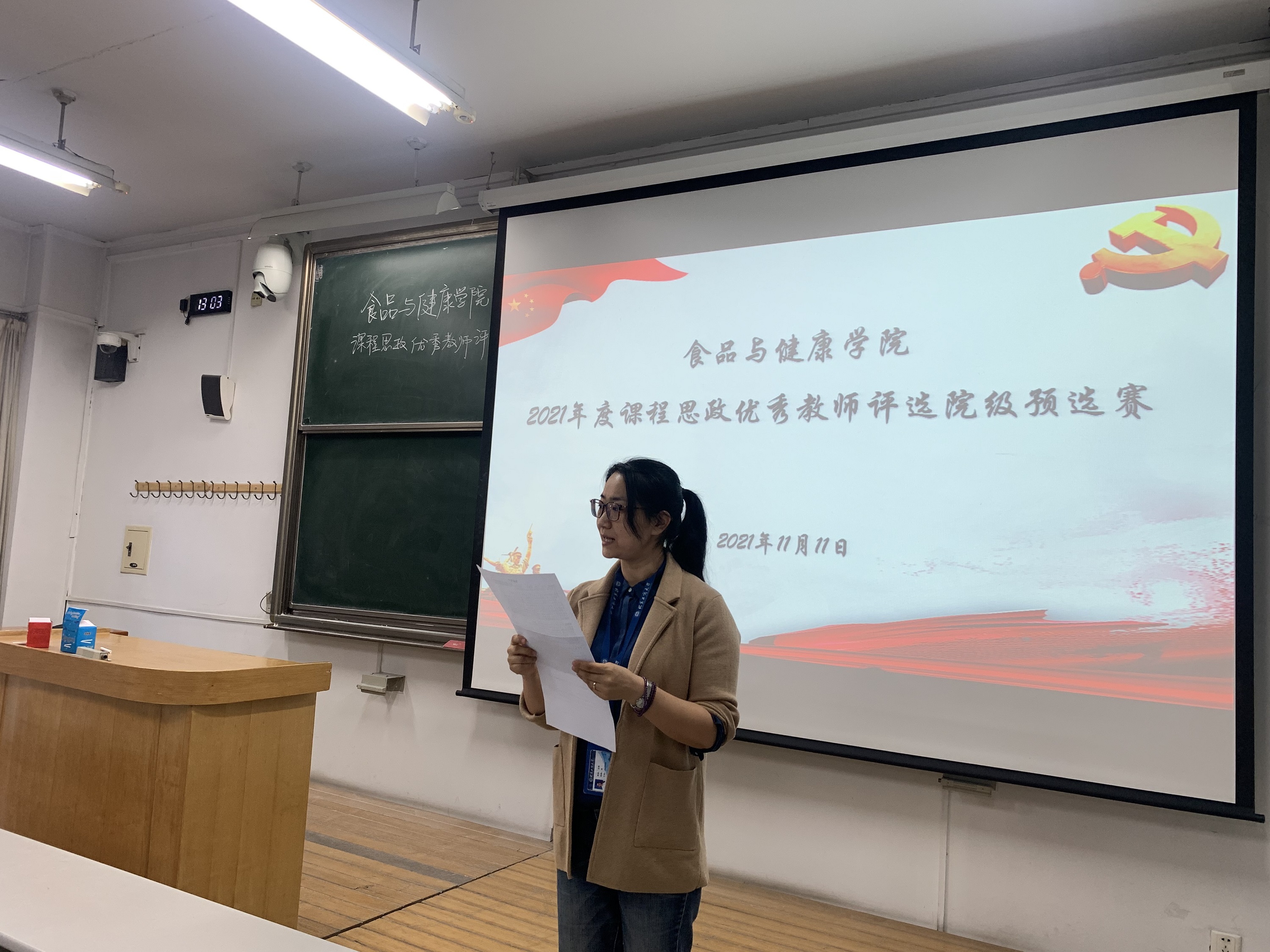 公司特别邀请了首都师范大学马克思主义学院韩华教授以及公司马克思主义学院赵春丽教授,人工智能学院赵峙尧教授及校级督导专家孙家跃教授作为点评专家,学院经理王静、副经理刘野、副经理王蓓、食品科学与工程系主任肖俊松及副主任郑喆、食品质量与安全系主任熊科及副主任陈洲参与比赛评选,学院全体专任教师观摩比赛,副经理王蓓主持比赛。