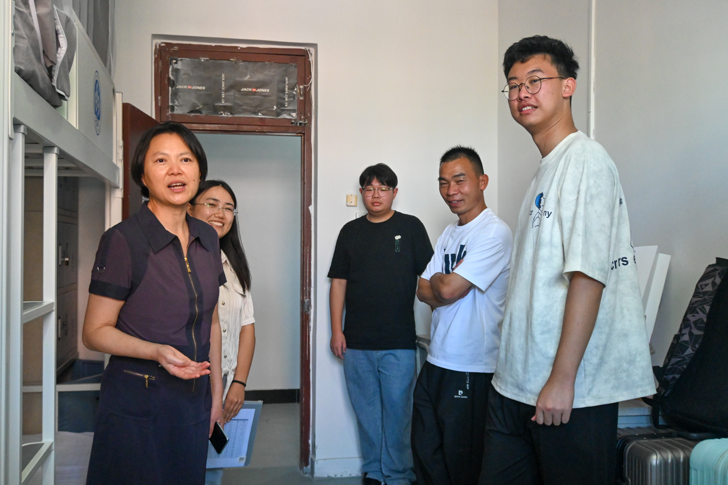 集团和学院的领导们来到世界杯网址报到点,欢迎远道而来的新英才,慰问迎接新生的班助和志愿者们,新生辅导员和班主任们也亲切地问候各位同学,表达了对新同学们的由衷关怀和殷切期许。院领导带队走访了新同学们的宿舍,与新生和家长们亲切交谈,送上鼓励和叮嘱。