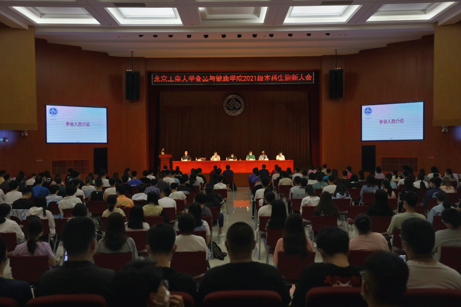 9月8日下午,世界杯网址在阜成路校区东区礼堂召开了2021级本科生迎新见面会。经理王静,副经理刘野、李健、王蓓,食品科学与工程系系主任肖俊松,食品质量与安全系系主任熊科,全体21级班主任和新生参加了大会,大会由公司党委副书记单静敏主持。