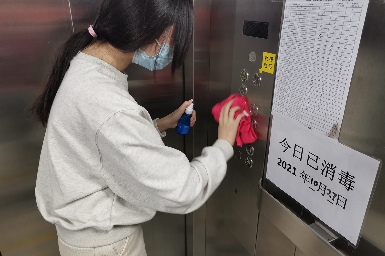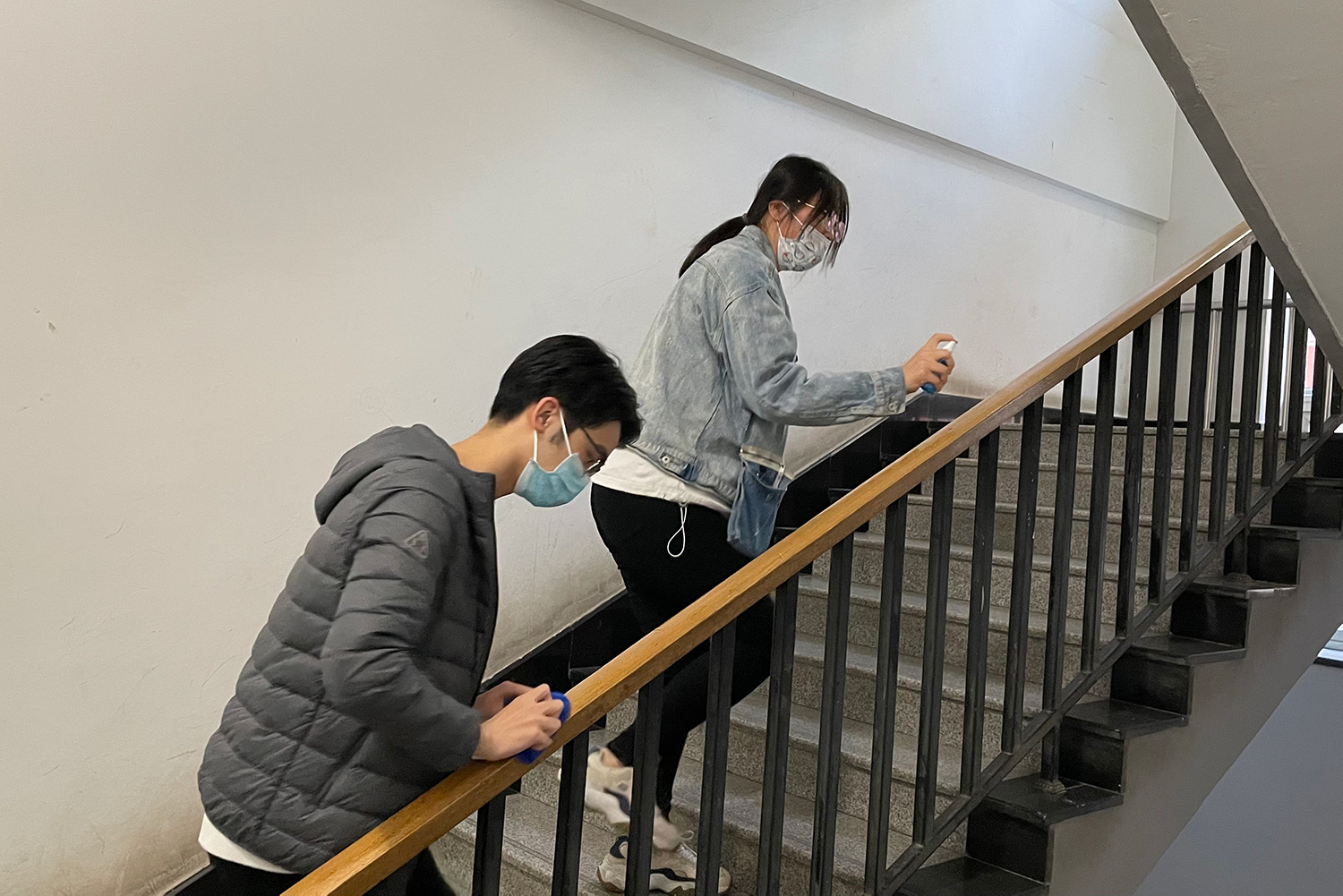在学校清洁工作的基础下,支部同志们再次认真打扫了教三楼教室、楼梯间、电梯间等多个场所,并进行了消毒处理,以加强学校为师生们的筑起“安全墙”。