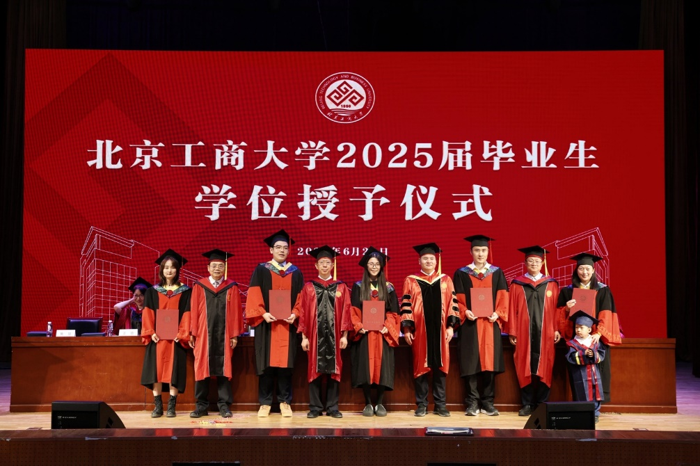 学位授予仪式中,孙宝国、邓祥征、贾英民、罗云波等几位教授率先为博士毕业生授学位,随后,学院教授代表为硕士和本科毕业生授学位。毕业生们步履坚定地上台,双手接过证书,拨穗正冠,自信和期待在他们的脸上绽放夺目的光彩。