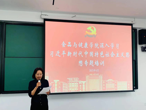 会议开始由学院书记胡燕霞致欢迎词,胡书记指出深入学习贯彻习近平新时代中国特色社会主义思想和习近平总书记重要讲话精神,推动全院教师充分认识学习宣传贯彻党的二十大精神具有重要意义。在新时代新征程中奋力将新理念、新科技、新案例纳入课程教学之中,促进教学工作高质量发展新局面,切实走好第一方阵、当好“三个表率”、建设模范院系,为全面建设社会主义现代化国家、全面推进中华民族伟大复兴贡献食品力量。