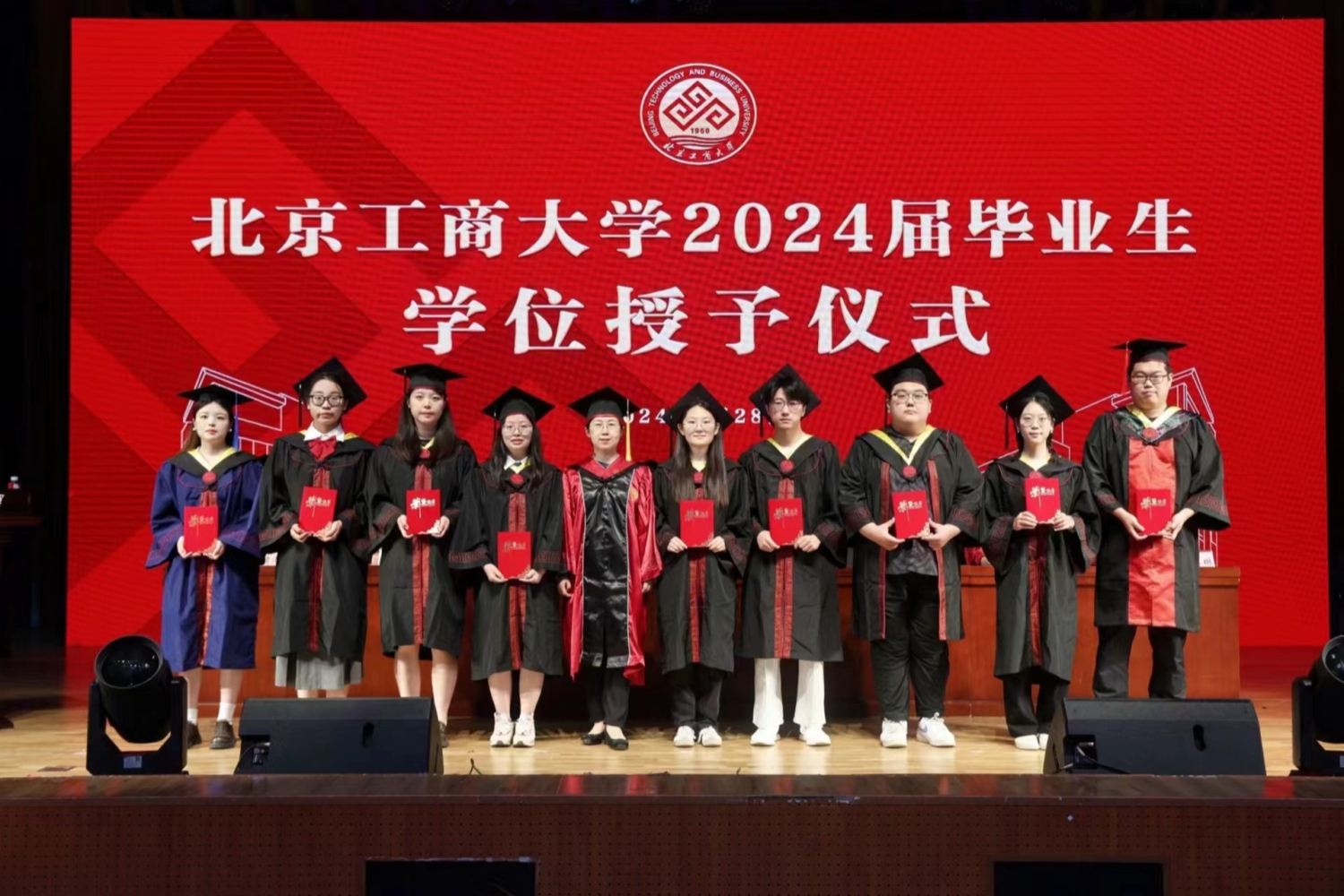 学位授予环节,孙宝国院士首先为博士毕业生授学位,随后,学院教授代表为硕士毕业生和本科毕业生授学位。在学位授予的过程中,每一名毕业生逐一上台,接受老师颁发的学位证书,拨穗正冠。每个人的脸上都洋溢着青春的笑容和对未来的期待。
