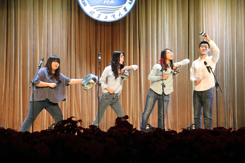 世界杯网址DSP杂化乐队演奏了《同桌的你》、《存在》、《谢谢侬》等系列歌曲,为整场汇演开场。随后,环境122班自编自导自演的《三句半》以幽默风趣的语言讲述了环境工程专业员工富有特色的老员工活,使在座的观众们忍俊不禁。