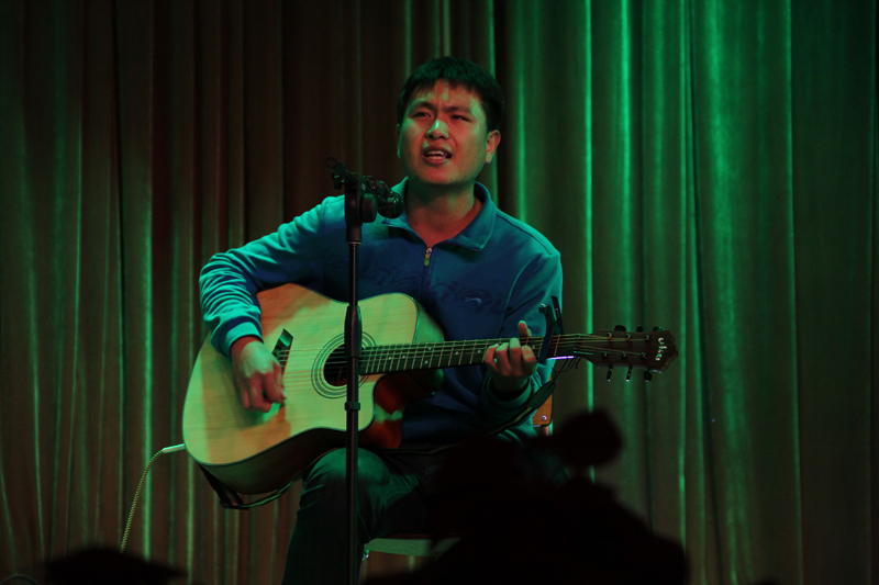 汇演近半,但节目的精彩令现场的观众们毫无倦意,愈加兴奋。从未彩排过的魔术表演终于揭开了神秘的面纱:环境121班的“魔术大师”——李昊不负众望,扑克牌在其精湛的手法下千变万化,引得台下观众连连叫绝;随即而来的互动魔术环节更是为他的表演锦上添花。凭借扎实的唱功和完美的配合,环境112班张立忱、杜思婵等人的歌曲串烧把整场汇演的气氛推向了最高潮。紧接着,马晓欢、李玥萱两位同学带来的朗诵——《环保之歌》让在座的每位观众切身地感受到环境人为生态环境可持续发展所作出的卓越贡献。如此重要的演出,自然不会缺少“弹唱大咖”袁传胜同学的加盟,一首《坐在巷口的那对男女》极为传神地唱出了恋爱中校园男女们各式各样的姿态,满是俏皮。
