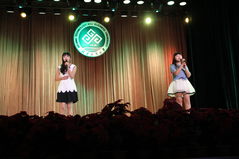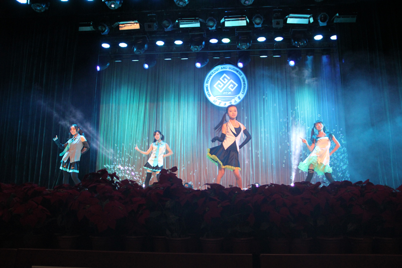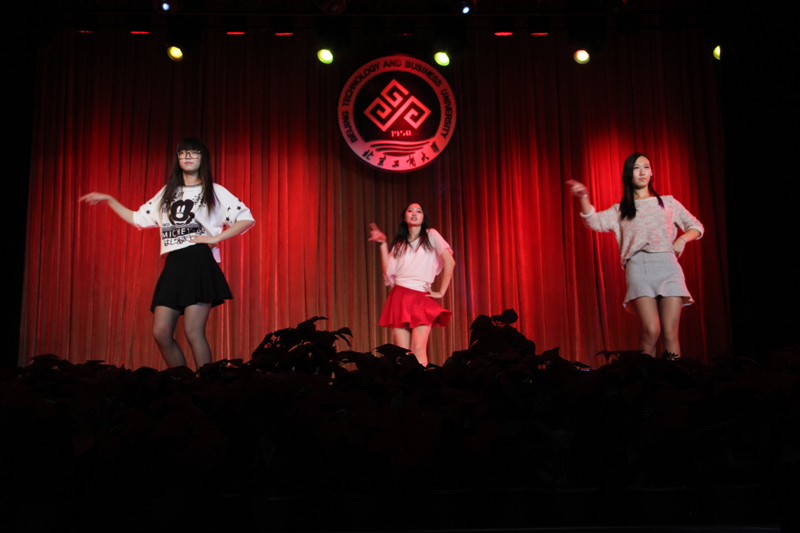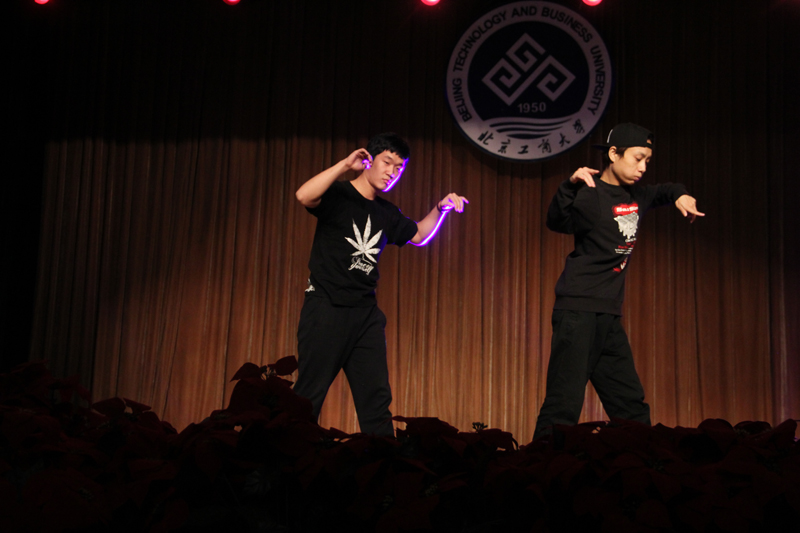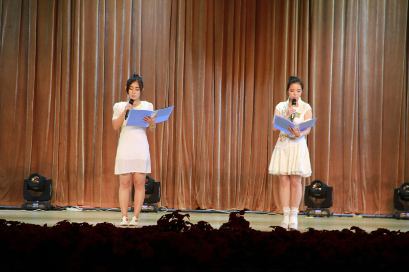 歌曲《舍不得》、对唱《Tonight I feel close to you》分别由刘骄慧和刘杨、尹奇双亲情演唱。动人的旋律传达出员工们对于浓浓的师生情谊、珍贵的同窗友情,以及美好的校园爱恋的歌颂。作为新生,时跃同学第一次在学校的大舞台上进行表演,为在场观众们弹唱了一曲《喜欢你》,赢得阵阵掌声。绚烂的灯光、动感的舞姿,来自环境132班徐娴等三位女生跳的热舞——《Lamb》,该节目与环境122班张鑫带来的街舞Poping交相呼应,引爆了整个舞台。而后,环境132班马晓欢等四人的初音舞蹈——《快乐合成器》,使得演出现场即刻刮起了一阵“活力可爱风”。