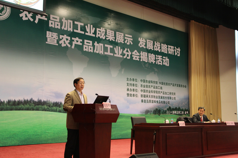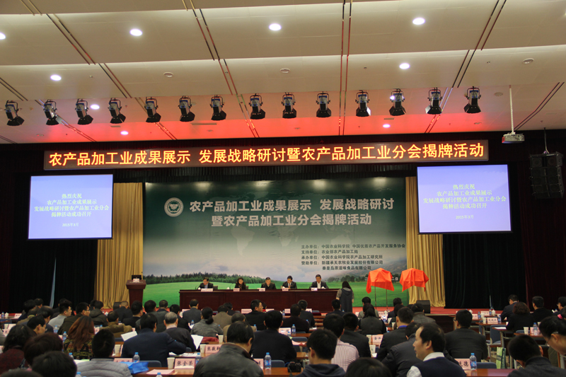 3月2日,由中国农业科学院、中国优农协会和农业部农产品加工局主办的“农产品加工业成果展示、发展战略研讨暨农产品加工业分会揭牌活动”在中国农科院举行。公司董事长孙宝国院士应邀出席并作主旨报告。来自全国各地的中国优农协会农产品加工分会会员、研发体系各分中心代表、各省农科院加工所所长以及农产品加工龙头企业代表等近300名参加了会议。