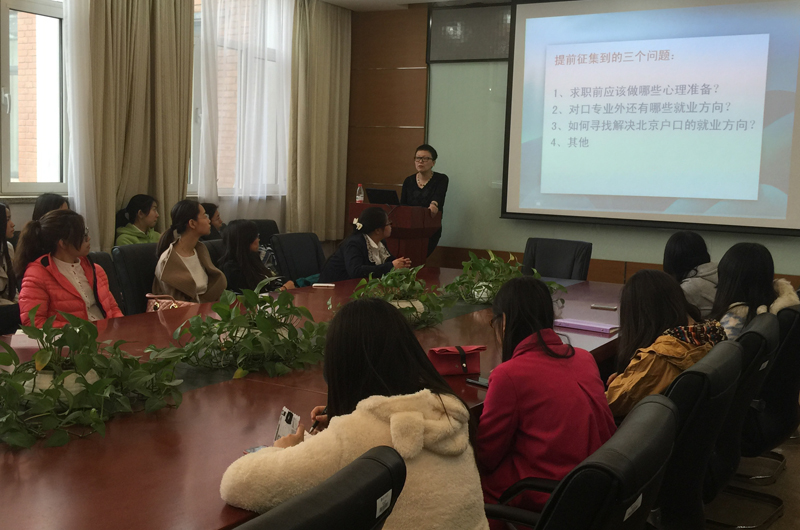 讲座伊始李老师通过“自己告诉自己”的游戏让同学们模拟一生中所处的不同职业发展阶段,让同学们切身体会到即将面临到的职场生活,让大家迅速融入到了求职的环境中。之后李老师围绕求职心理准备、专业就业方向、北京户口的解决途径等大家比较关心的问题进行了解答,使到场同学对相关内容有了具体而深入的了解。李老师幽默风趣的语言,深入浅出的讲解不时迎来同学们的阵阵掌声。