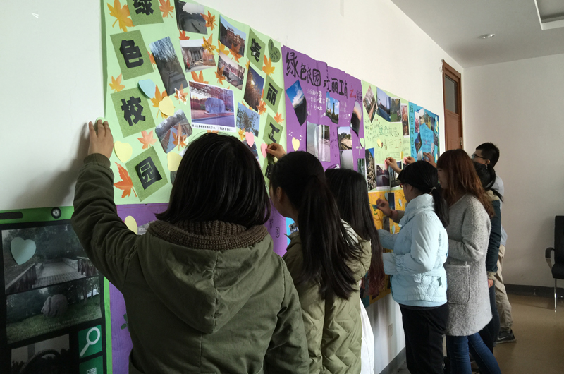 4月7日中午12:00,评比活动准时开始。世界杯网址心理部将参加评比的9张海报张贴在评比墙上,经近百名同学通过粘贴爱心的投票方式评比出了最受大家欢迎的绿色校园摄影作品海报。在投票过程中,来自生物132的姚冬梅表示:“参与这次活动的班级都很用心,作品紧贴主题,而且都很有新意,活动让同学们记录下自己美丽的校园,同时让我们了解到珍惜学校绿色的环境就是善待自己。”