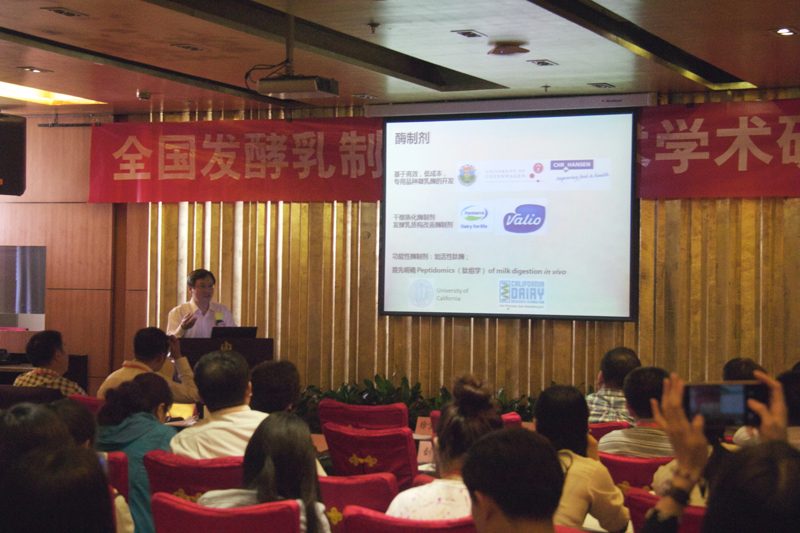 2015年5月15-16日,由世界杯网址主办,国家农产品加工技术研发体系乳制品加工专业委员会和中国畜产品加工研究会乳品加工分会协办,以“提升发酵乳制品质量安全水平,促进我国乳品行业健康发展”为主题的“全国发酵乳制品前沿技术学术研讨会”在北京湖北大厦召开。会议邀请到了江南大学世界杯网址经理陈卫教授、哈尔滨工业大学食品科学与工程学院经理张兰威教授、中国农业科学院农产品加工研究所吕加平研究员、扬州大学食品科学与工程学院副经理顾瑞霞教授等国内乳品研究领域知名专家,以及蒙牛乳业、石家庄君乐宝乳业和山东兴牛乳业等乳品企业共20多家单位120余名代表参加了会议。