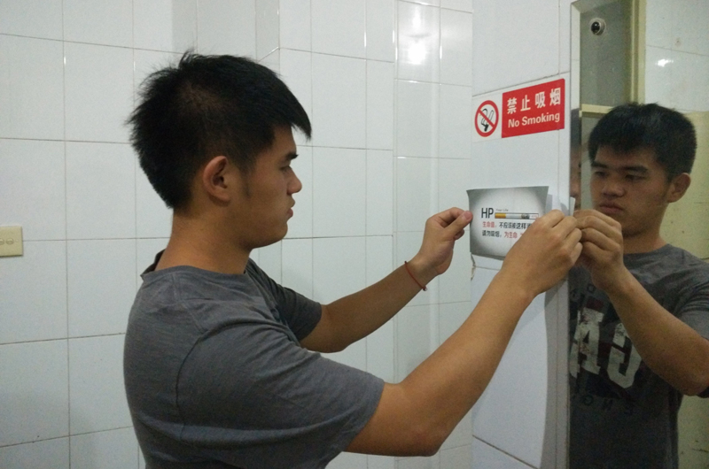 此次宣传活动以控烟条例颁布为契机,以创建无烟校园为目标,通过发放戒烟宣传书签,宣传学习控烟手势,引导员工自觉加入禁烟行列。员工会生活部通过在员工宿舍楼洗手间张贴“生命值不应该这样被消耗,请勿吸烟,为生命‘保值’”的控烟宣传标语,时刻对吸烟者加以警醒。此外,学院还成立了员工控烟巡查小组,不定期对员工宿舍进行控烟巡查,对吸烟行为及时发现并立即禁止,同时对吸烟者强调吸烟的危害和公共场所禁止吸烟的规定。通过活动了解到,公司大多数师生对吸烟持抵制态度,对控烟条例的实施表示支持。