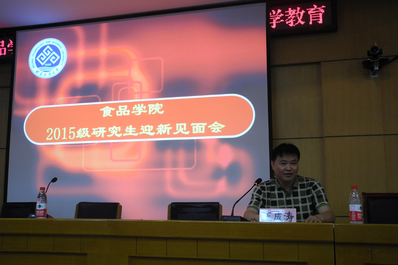 来自2013级食品科学专业的张兴同学代表学院老生向新同学的到来表示热烈欢迎。作为研究生国家奖学金的获得者,张兴同学与同学们分享了他学习和科研经验,从学会学习、重视科研、修养身心几个方面为新生提供了良好的建议。2015级新生代表张珊珊同学,代表全体新生郑重承诺,在未来的研究生学习生活中,将会求真务实、修身立德、勤奋钻研、敢于创新,不仅要完成自身的学习、科研任务,也要肩负起传承学术传统,传递知识火炬的使命。